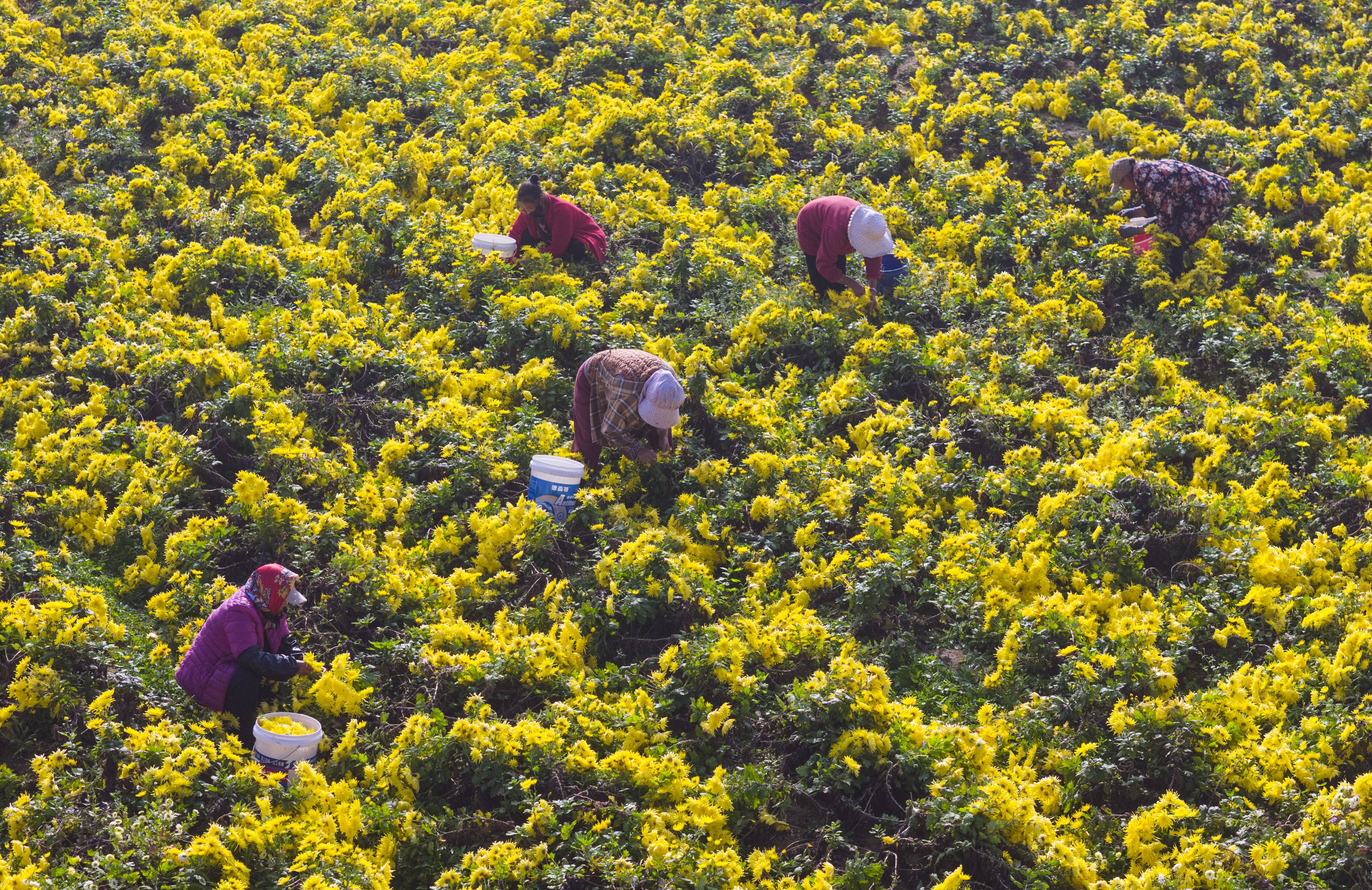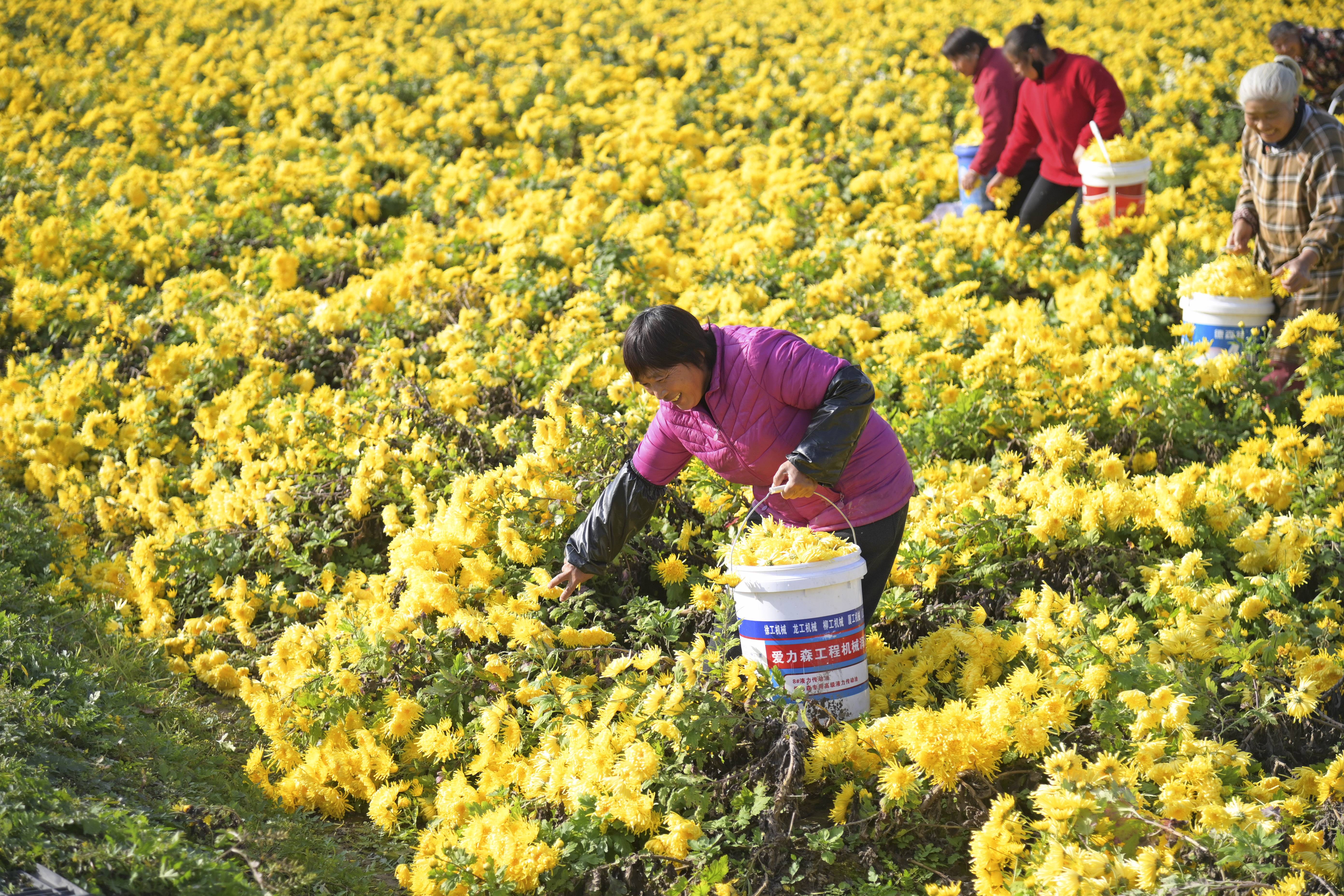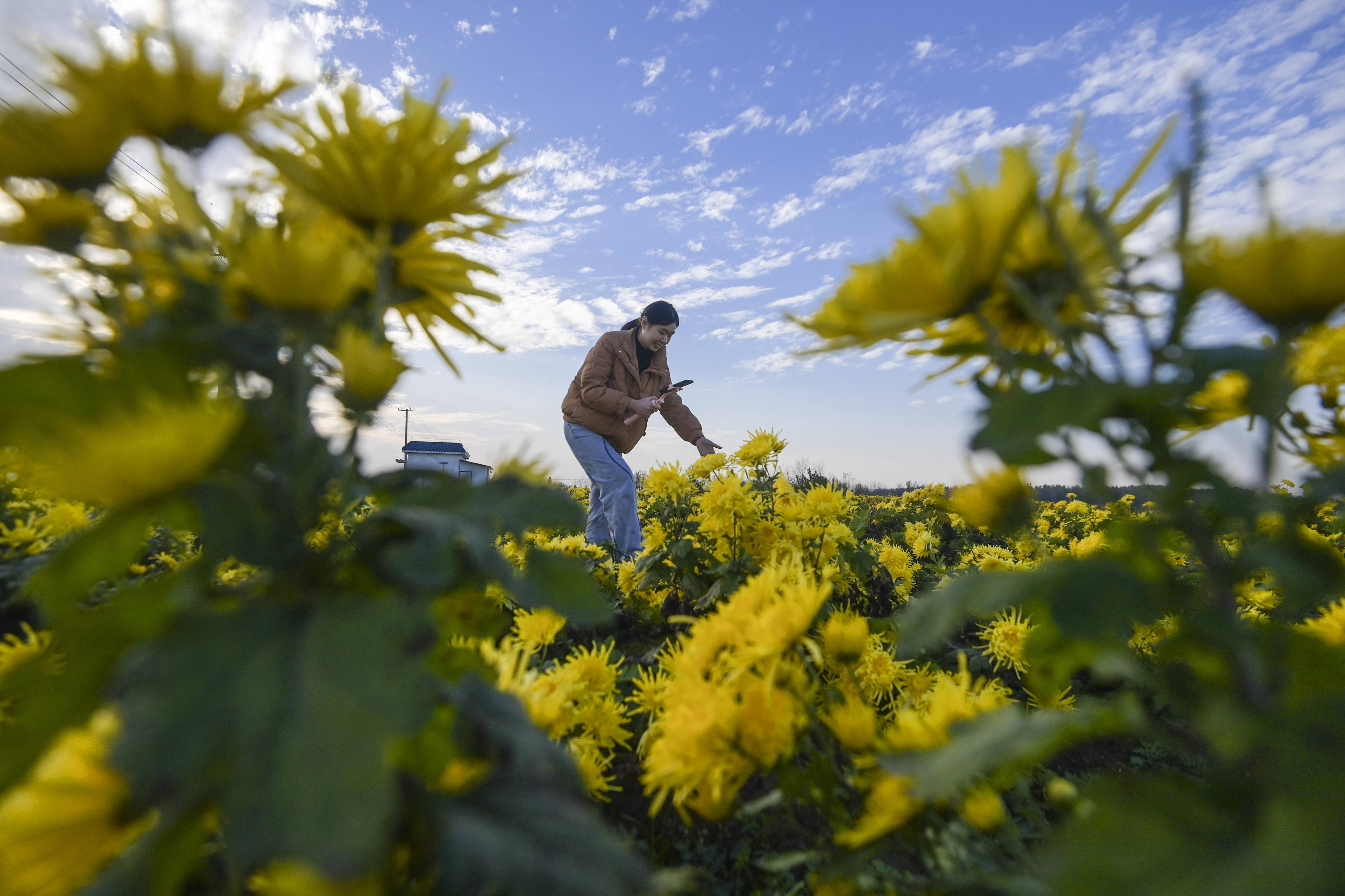 “一天能摘100多斤,每天能收入100多块钱呢。以前种地靠天吃饭,现在家门口打工,既能照顾家,又有稳定收入。”村民边说边熟练地采摘。菊花不仅扮靓了乡村田野,还绽放出“美丽经济”,带动当地群众实现“家门口”增收。这种“家门口就业”模式,让留守老人、妇女成为产业工人,激活了乡村人力资源的“沉睡价值”。