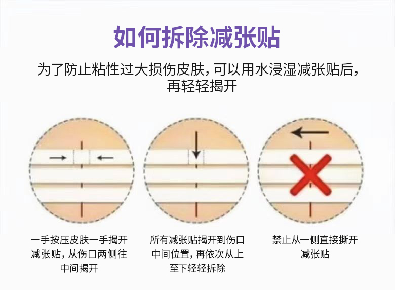 2.拆线后贴,多数情况下是拆线后开始使用减张贴。